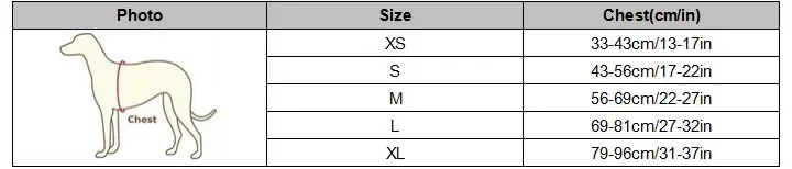 Size XS: chest is 33-43cm/13-17in
